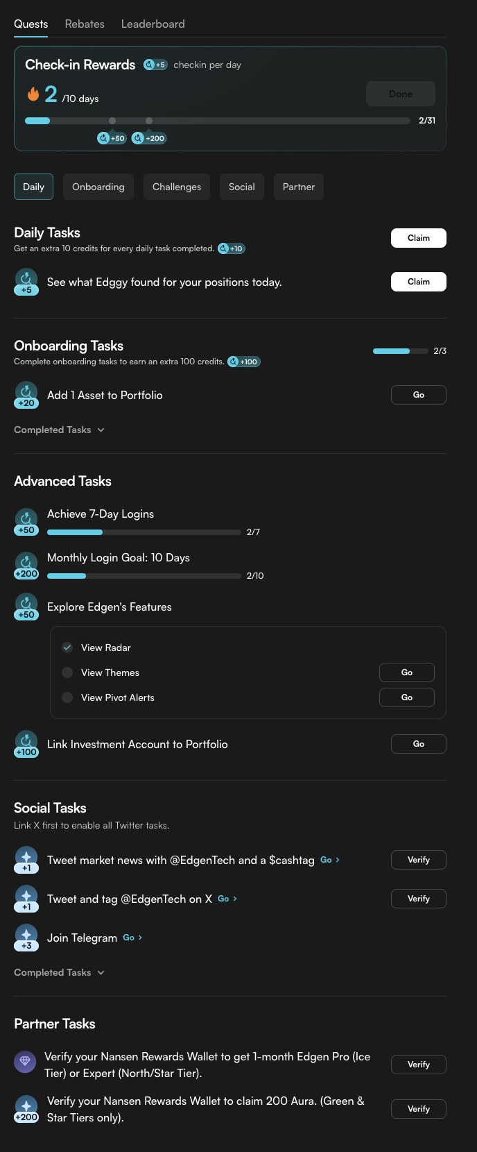 Completing partner tasks rewards extra Aura or perks like free Expert access, and lets you discover new tools and ecosystems connected to Edgen.