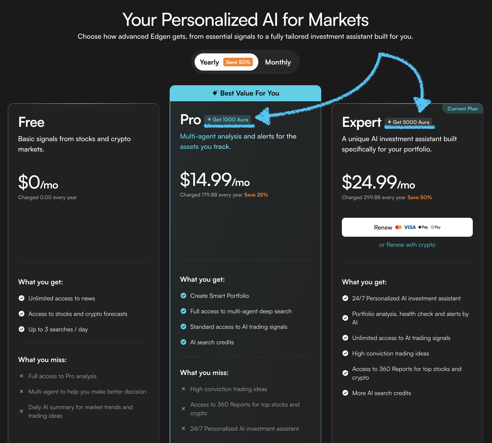 Subscribing to Pro or Expert gives you full access to Edgen's AI tools. But your subscription also brings Aura benefits: