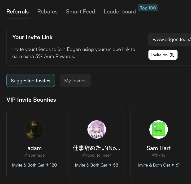 Invite friends to join Edgen. When they sign up and complete onboarding, you both earn Aura.