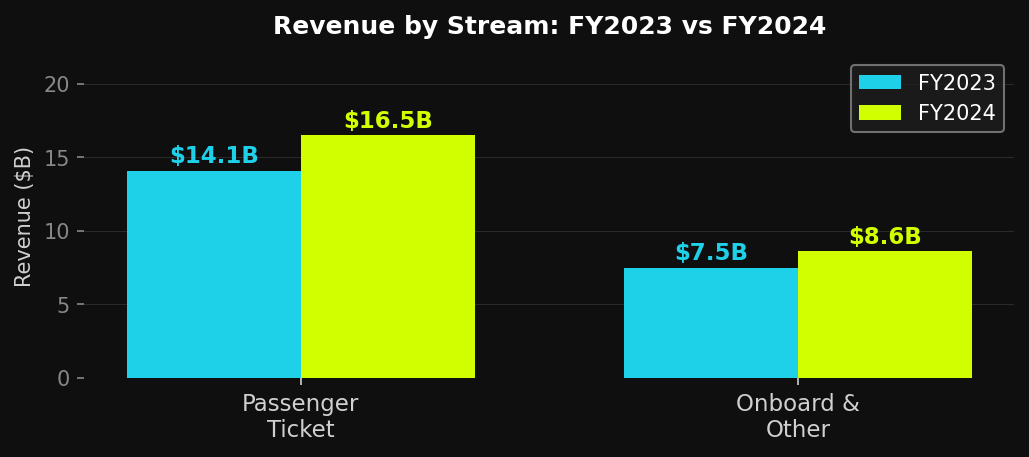 Passenger Ticket Rev ($B) | — | 14.1 | 16.5 | ~17.5 | ~19.3 |