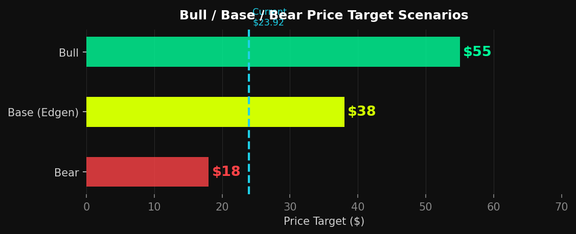 Scenario | Price Target | Upside vs Current | Key Assumption | Probability |
